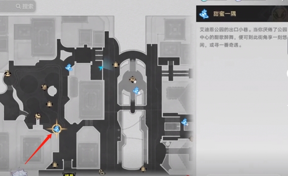 2、在地图的最西部找到【甜蜜一隅】传送点进行传送。
