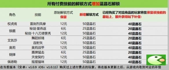我们将给全部9个付费技能增加蓝晶石解锁选项。