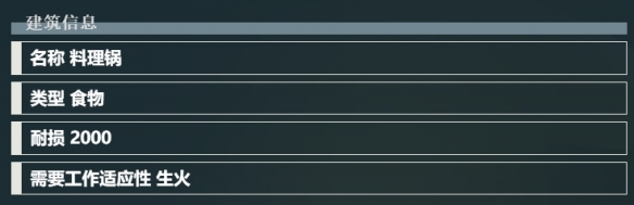 料理锅的建筑类型为食物,耐损度为2000。