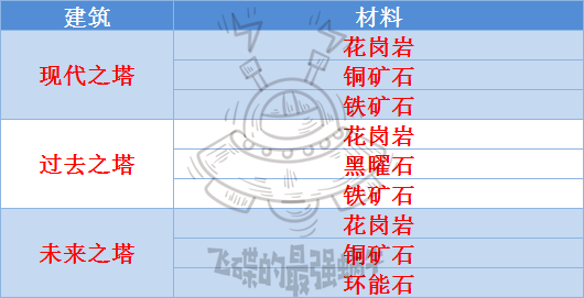关于金字塔升级,每个时空的金字塔升级都要消耗一定数量且不同种类的石材,通过升级情报可以增加石材的产出,建筑所需石材及石材产出如图所示: