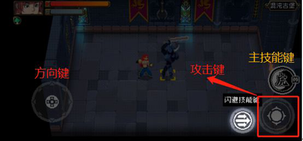 战斗场景中会出现文字指引,根据指引点击闪避技能键进行闪避