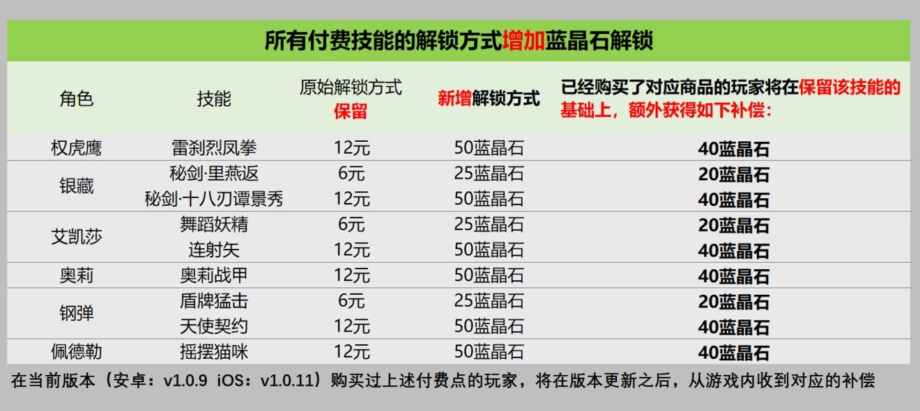 我们将给全部9个付费技能增加蓝晶石解锁选项。