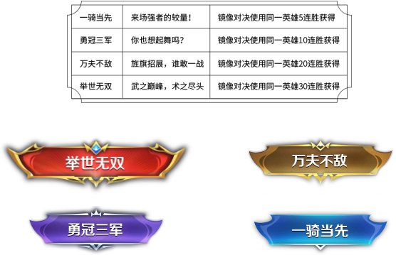 镜像对决模式明日开启,本周开放法师英雄solo,参与1v1镜像对决即送法师皮肤体验宝箱*1,使用同一英雄连胜达指定场次还有荣誉称号!