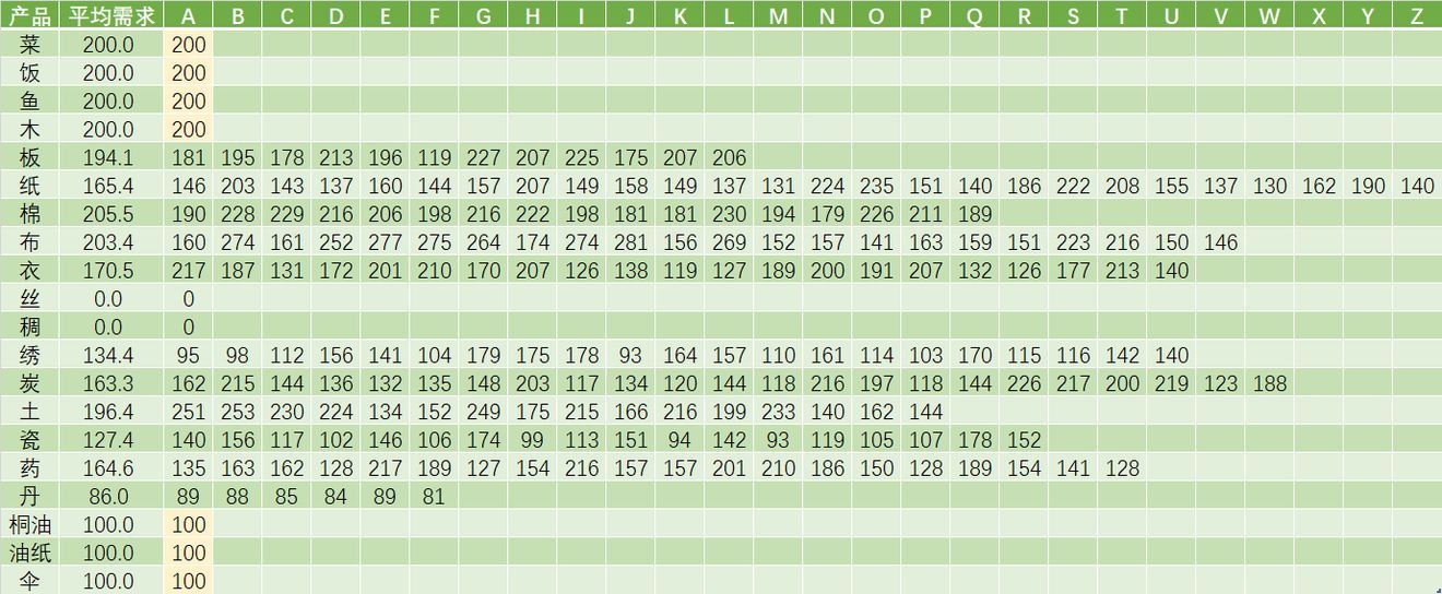 刺绣客栈需求大,回报率高,多多益善(我收集数据时,两天刺绣直接空仓)。草药、丹药虽然应天也能生产,但成本太高,而且苏州buff强,应天自产血亏。